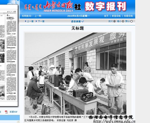 英国威廉希尔公司以“贯彻科学发展观,服务三农,建设美好家园”为主题的2010年暑期“三下乡”社会实践活动圆满结束。从7月9日开始,服务队先后到呼和浩特市玉泉区桃花乡小黑河村、后桃花村以及集宁区白海子镇、马莲渠乡等地开展活动。为当地村民普及用电常识,宣讲家电维护和保养知识,并为村民义务维修家电、放电影等。在为期一个月的社会实践活动中,服务队共收到损坏的电视机等家电共500余件,修好400多件。集宁区白海子镇村民孙大爷竖起大拇指夸赞志愿者队员们说:“娃娃们真厉害。”