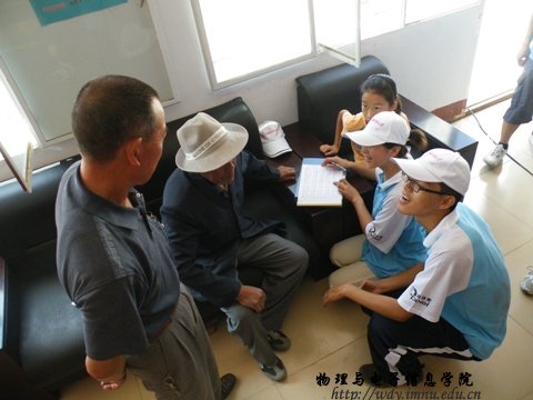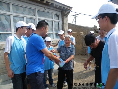 7月14号上午,在学工办主任张伟老师的带领下,志愿者们看望了老党员乔吉贵和低保户杜枝梅两家,并带去牛奶和西瓜等物品。接下来,志愿者们将前往马莲渠乡,在那里志愿者们将继续为村民进行义务维修家电、播放电影和宣传安全用电知识等工作。我们将陆续报道这里的最新消息,敬请关注。