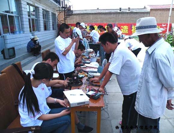 时,志愿者们在村委会院内张贴了“电视技术发展历史百年回顾”、“电视机的维护与保养”、“怎样选购电视机”等科学知识宣传展板,设置了科技知识讲台,同时也设立了家电义务维修点。听说这一消息后,来聆听科技知识讲座和维修家电的农民群众络绎不绝,前来咨询电视机购买、维修、使用等相关问题的农民朋友都得到了满意的答复。活动一直延续到傍晚,送到维修点的电器有电风扇、电饭锅、电视机、