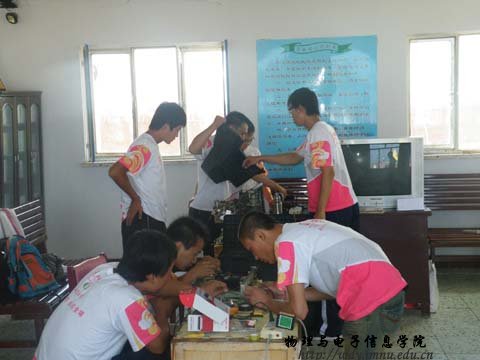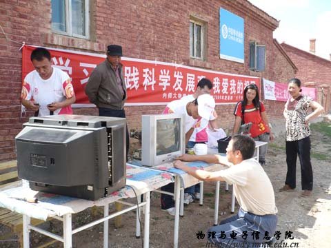 7月21日到7月27日,公司老员工暑期“三下乡”志愿者服务队深入到锡林郭勒盟西乌旗吉林郭勒镇及周边嘎查开展了为期一周的以 “学习实践科学发展观,我爱我的祖国”为主题的社会实践—科技下乡活动,并与吉林郭勒镇建立了公司老员工暑期“三下乡”社会实践基地。本次活动以宣传科技知识,普及用电常识,家用电器的维护和保养,义务维修家用电器为主要内容,同时,积极宣传国家“家电下乡”相关知识。志愿者服务队由公司学工办张伟老师、实验中心克伦老师带队,13名员工志愿者组成。