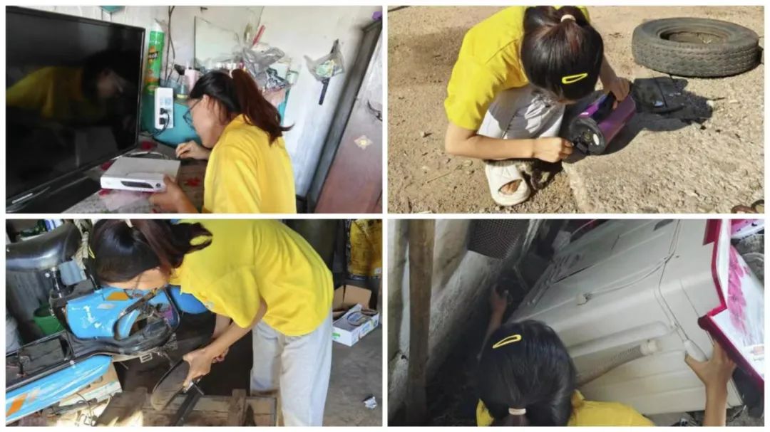 2021级物理学汉二班王文雅通过家乡村民的介绍,了解到朝阳沟村人民虽然已经实现了小康生活,但是依然保持着节俭的习惯。许多村民家中都有坏掉的不舍的扔的家电。因此,王文雅帮助村民邻里维修家电尽,用自己所学为父老乡亲办实事。她仔细维修着村民家中各类电器。她说:“我没什么特长也没有什么过人之处,但是这次三下乡的活动我感触颇深,以后要多参加这样的活动,锻炼提升自己。”