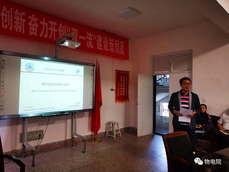 5月1日,山东大学物理公司王春雷教授受邀来到williamhill官网,于物理楼会议室做“碲化铅热电材料制备与性能”学术报告。此次报告会由公司副经理那日苏主持,部分任课老师以及研究生本科生参加会议。