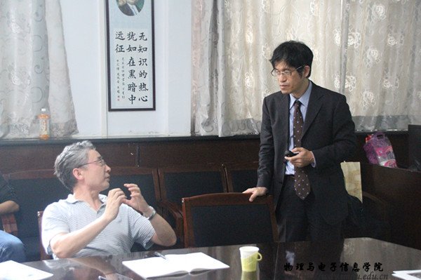 报告二:2016年6月29日下午,自日本奈良女子老员工活环境学部的原田雅史教授,在物理楼会议室展开了一次以Photoreduction synthesis of metal nanoparticles: Synthesis and structural characterization (光照射还原法制备金属纳米粒子:制备方法及其结构表征) 为题的学术讲座。其中就具有不同微结构环境下的高分子溶液、微乳液、离子液体等体系中所形成的金属纳米粒子的形成机理进行了详细的讲解;同时对用绿色化学方法(超临界CO2、离子液体、微波辅助法等)制备金属纳米粒子和采用UV-Vis、TEM、SAXS、EXAFS法表征微乳液、金属纳米粒子的微结构做了系统的介绍。在讲座中,原田雅史教授耐心的解答着每一位提问者提出的问题,对每一个涉及到的学术地细节做了深入的研究和讨论。