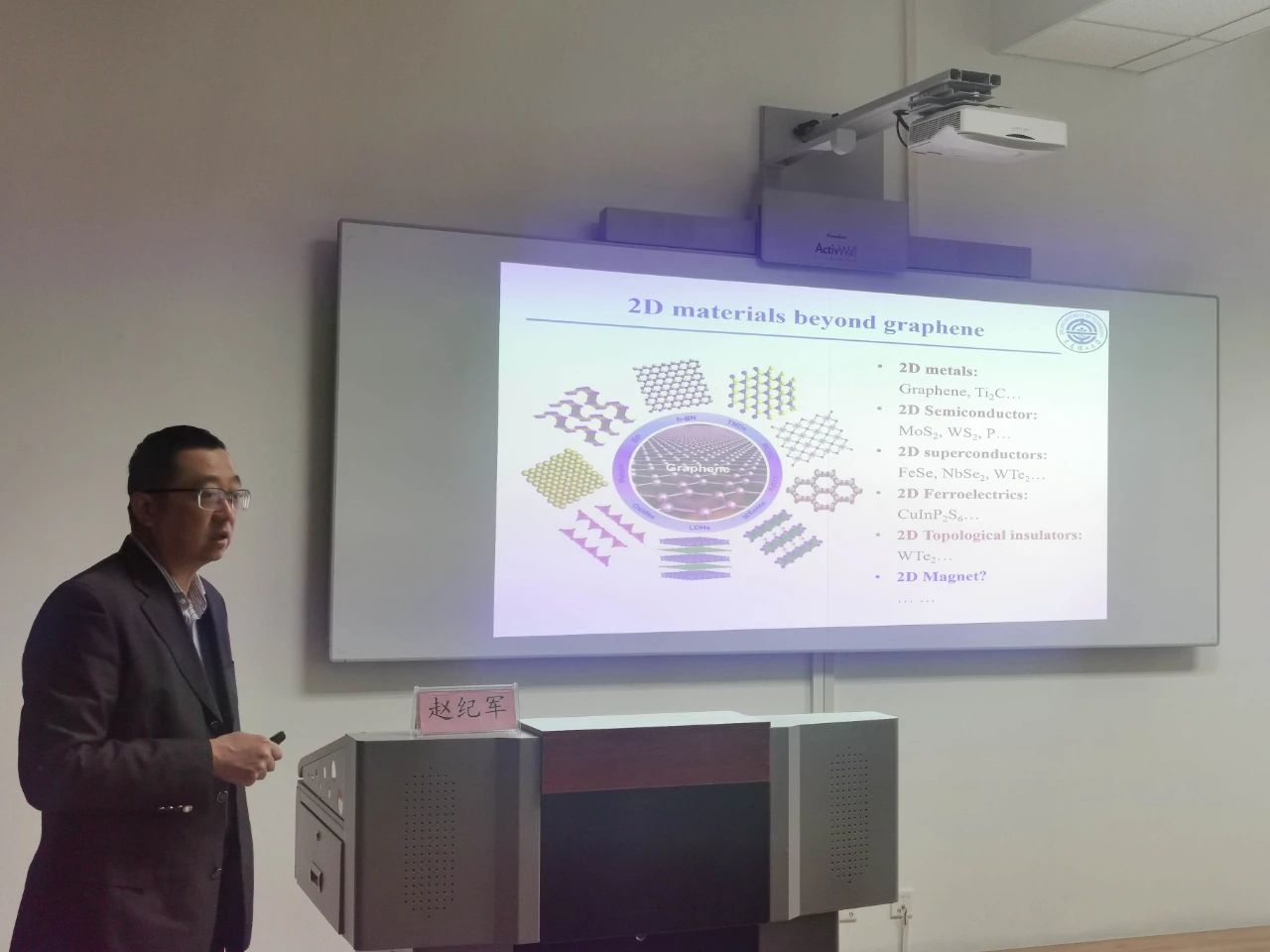 为紧跟最新研究成果,开拓同学们的视野,12月16日上午10时,公司邀请大连理工大学物理公司经理赵纪军教授于理工楼B座202举办了以《新型二维铁磁材料的设计与调控》为主题的学术报告。williamhill官网云国宏教授、公司党委书记刘美玲、副经理曹永军、副经理那日苏以及公司部分教师、本科生、研究生聆听报告。