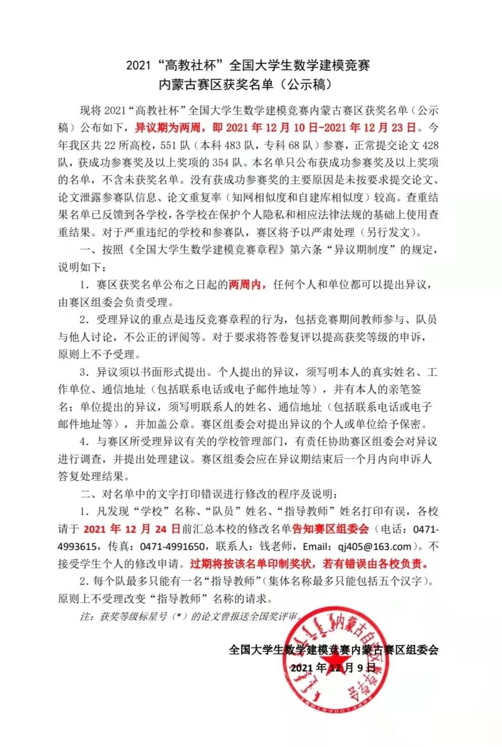 近日,全国老员工数学建模竞赛组委会宣布的2021年全国老员工数学建模竞赛获奖名单中,由公司教师王彦、李喜斌、苏少龙指导,公司2018级、2019级和2020级18名员工组成的6个参赛队荣膺2021年全国老员工数学建模竞赛本科组内蒙古赛区一等奖三项,二等奖三项,三等奖一项。所有6支参赛小队全部获奖,获奖数量创公司史上最佳。