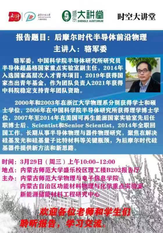 【预告|时空大讲堂】后摩尔时代半导体前沿物理
