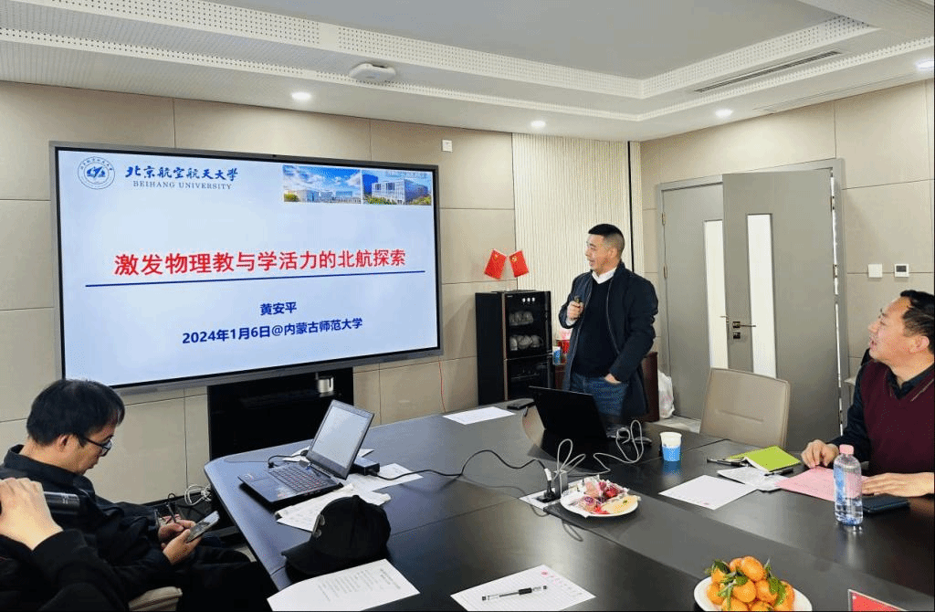 北京航空航天大学黄安平教授作了《激发物理教与学活力的北航探索》报告,报告从新形势、新概况、新举措、新进展四个角度介绍了北京航空航天大学物理公司团队建设、人才培养、课程建设方面的工作。