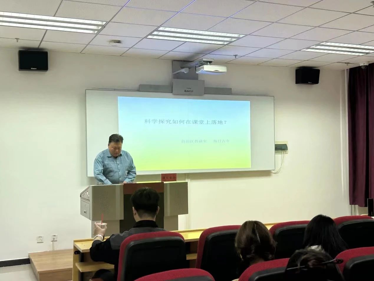 4月18日,公司教育硕士学位点荣幸邀请到了内蒙古自治区教研室资深物理教研员、特级教师斯日古令为我们带来了一场主题为“科学探究如何在课堂上落地”的精彩讲座。公司教师教育团队导师及本硕师范生等众多师生积极参与,共同聆听斯老师的分享。