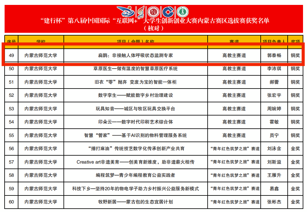在8月11日刚刚落幕的第八届中国国际“互联网+”老员工创新创业大赛内蒙古赛区选拔赛中,公司《草立方——牧草补光生长方案开创者》《科技下乡---坚持20年的物电学子助力乡村振兴公益服务新模式》《全光谱照明用荧光材料开发和应用技术》三个参赛项目分别斩获高教主赛道、“青年红色筑梦之旅”赛道、产业命题赛道金奖!《扁鹊:非接触人体呼吸检测专家》获得高教主赛道铜奖。其中《科技下乡---坚持20年的物电学子助力乡村振兴公益服务新模式》《全光谱照明用荧光材料开发和应用技术》两个项目获得参加国赛资格。这是公司在“互联网+”赛事取得的又一历史性突破。