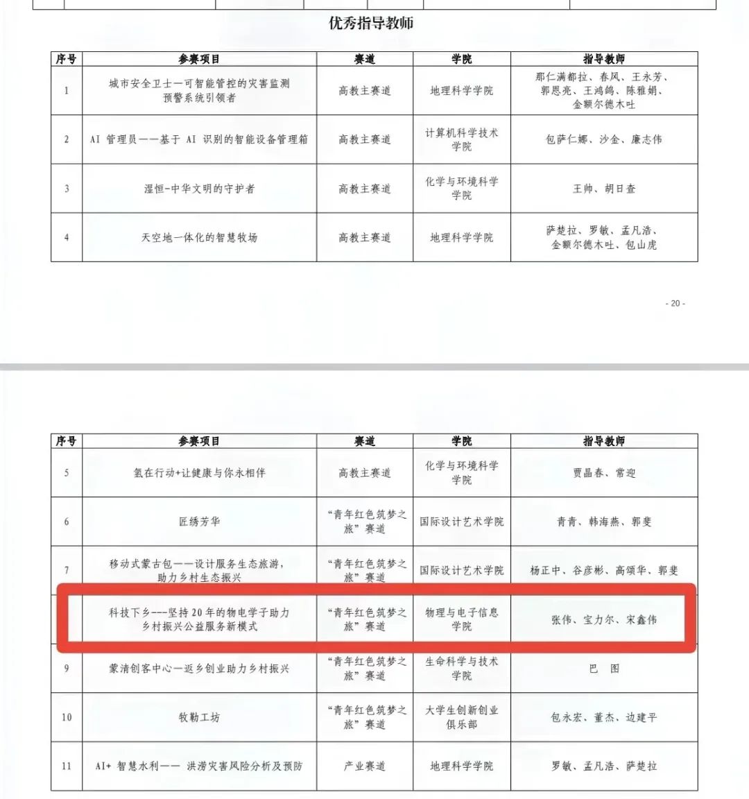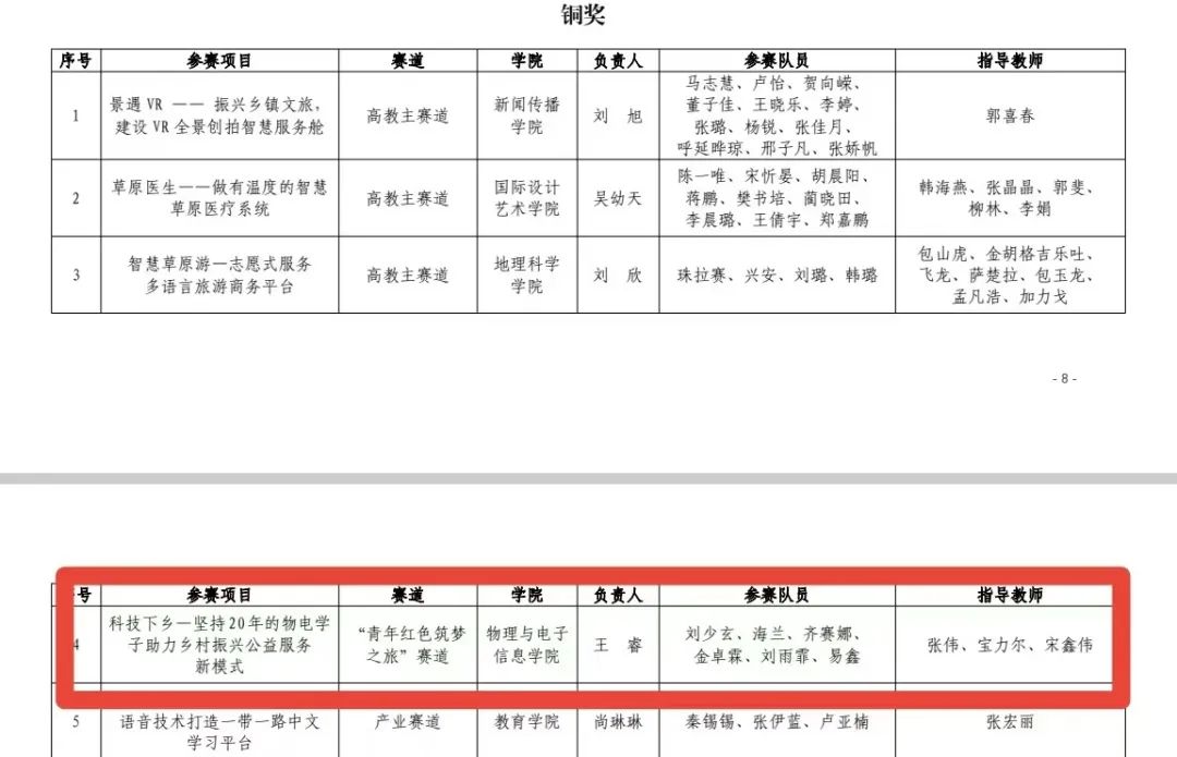 近日,williamhill官网下发内师校发〔2022〕7 号文件,《关于表彰第七届williamhill官网“互联网+”老员工创新创业大赛暨“青年红色筑梦之旅”活动先进集体和个人的决定》,其中,物电院“科技下乡---坚持20年的物电学子助力乡村振兴公益服务新模式”项目在第七届内蒙古自治区“互联网+”老员工创新创业大赛中获得内蒙古自治区铜奖、校级金奖,指导教师被评为优秀指导教师。